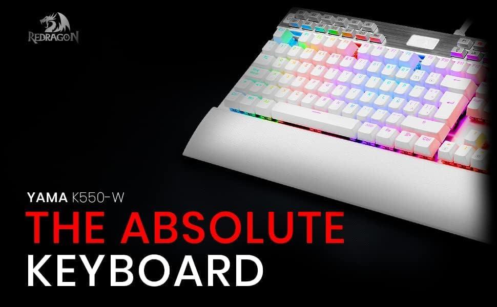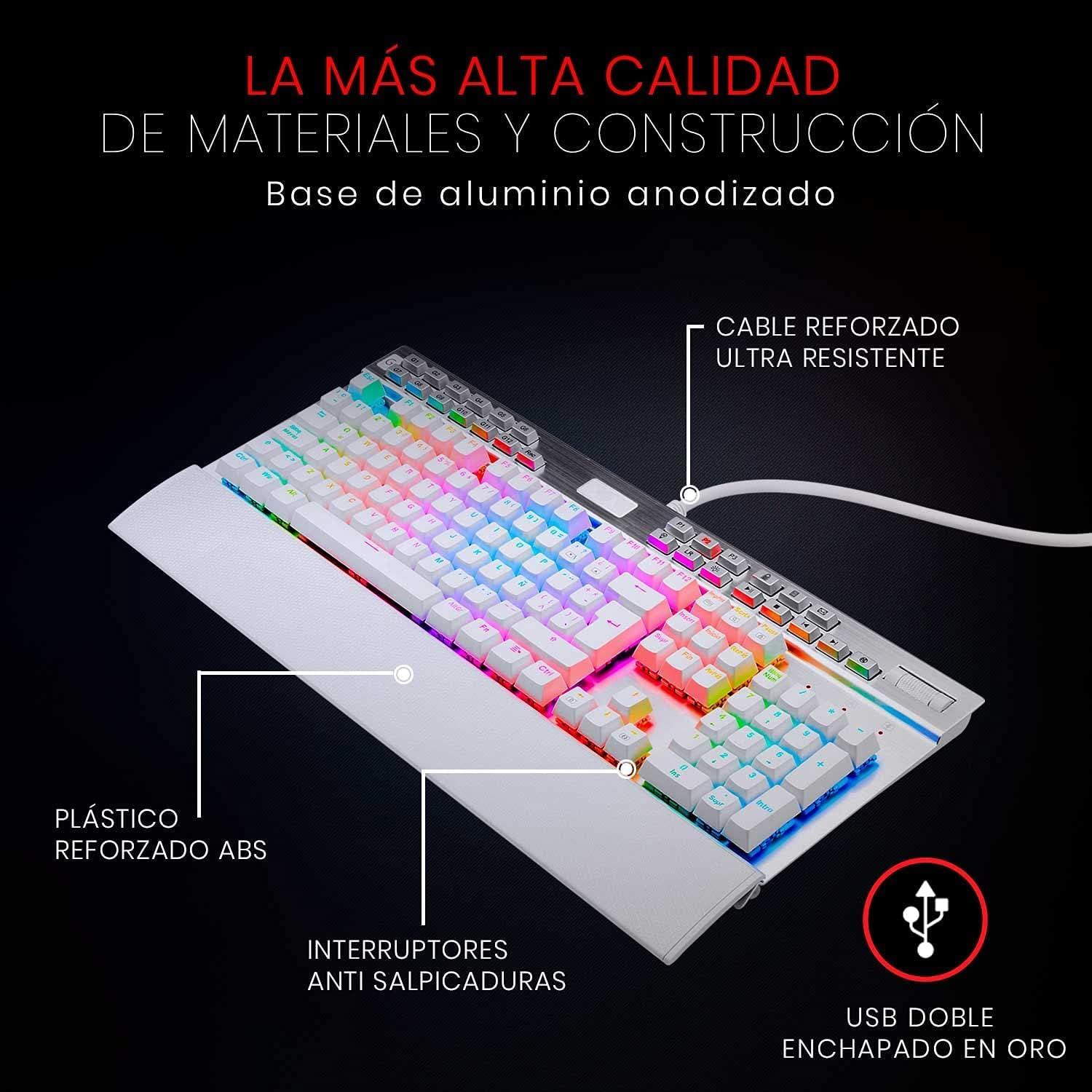 K550W Yama White Spanish Mechanical Keyboard, RGB for Gaming with Dedicated Multimedia Keys, Purple Switches, Detachable-Magnetic Wrist Rest