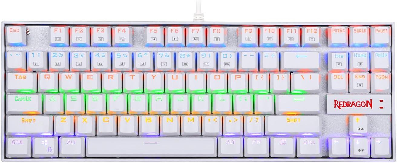 K552 Rainbow Mechanical Gaming Keyboard (Red Switch 87 Key TKL Design, White), USB